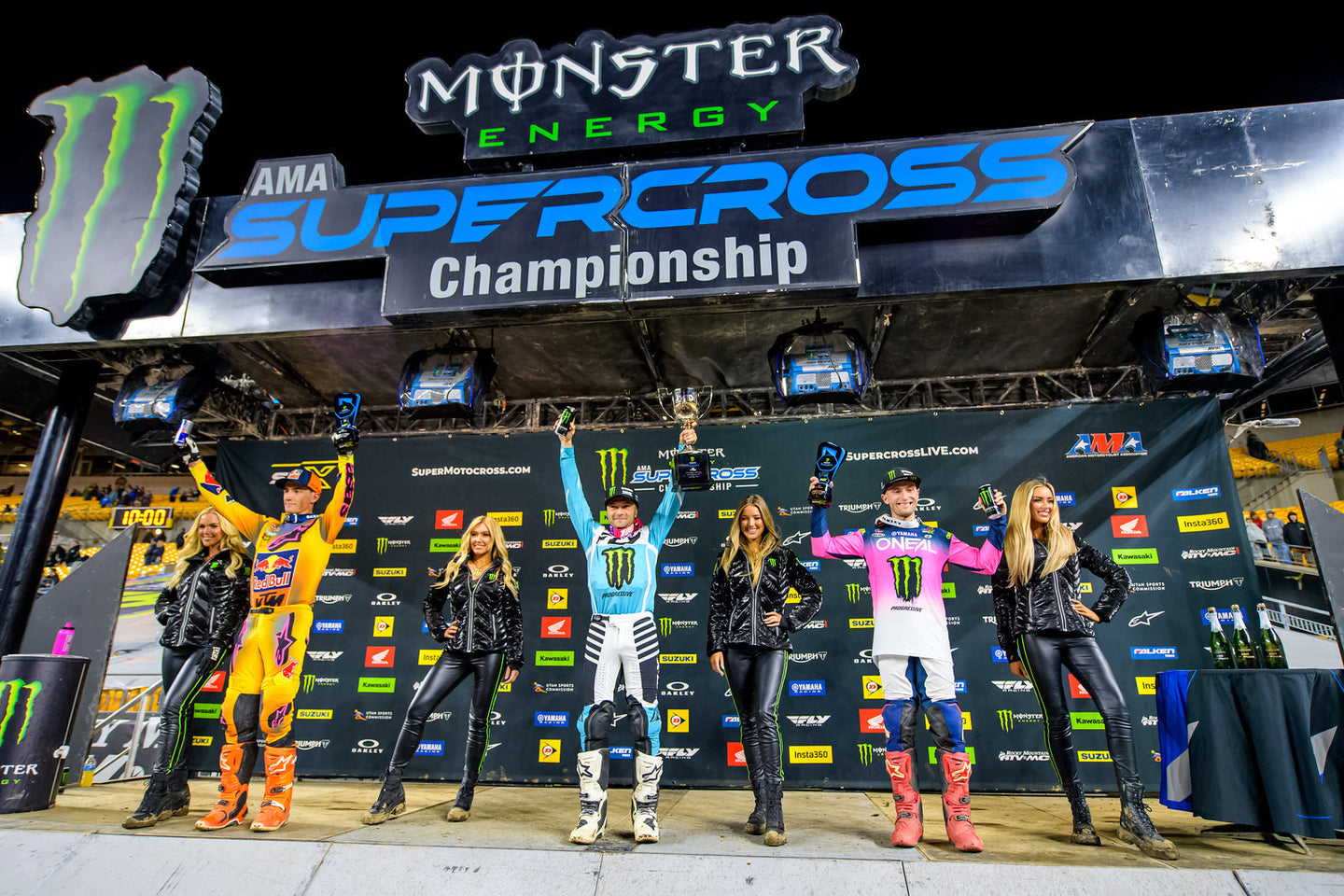 He was joined on the podium by Chase Sexton in second and Justin Cooper in third.