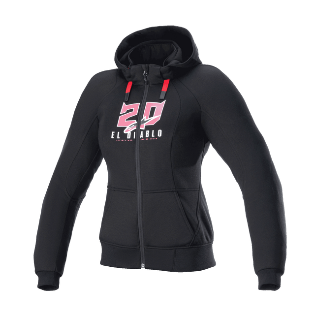 Available for Fabio’s female fans, the El Diablo FQ20 Chrome Sport Hoodie will also come in a women’s Stella version. Featuring the same material construction as the men’s version, the FQ20 Stella offers a dedicated women’s fit tailored to the female figure. The Stella Fabio Quartararo Chrome Sport Hoodie includes the printed El Diablo logo and the horned deveil number 20. Designed for urban riding and commuting, the lightweight FQ20 Stella Chrome Sport Hoodie has an anatomically profiled design for an optimized female fit and offers excellent abrasion resistance thanks to the aramidic reinforcements on the shoulders, elbows and back. The perfect choice for female riders looking for a protective riding hoodie, The FQ20 Stella looks