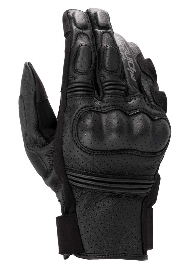 The universal, sport performance Phenom Air Leather Gloves are perfect for everyday and weekend riding use – a great short glove that riders riding any type of bike will appreciate. The fully perforated air version is ideal for riding in warmer climates and offers fully perforated leather on the back hand. Constructed from new, premium, soft goat leather on the palm and top hand, with stretch accordion inserts and stretch fourchettes in between the fingers, the Phenom Air Gloves provide instant and lasting comfort from the moment the rider puts them on. The gloves are reinforced on the high impact and abrasion prone zones like the side hand, cuff, and thumb. In addition, hard knuckle protection ensures the Phenom Air Leather Gloves provide not only comfort, but premium protection. The Phenom Air Leather Gloves offer a refined and discrete look with unmistakable Alpinestars’ DNA, perfect for those riders looking for an understated style.
