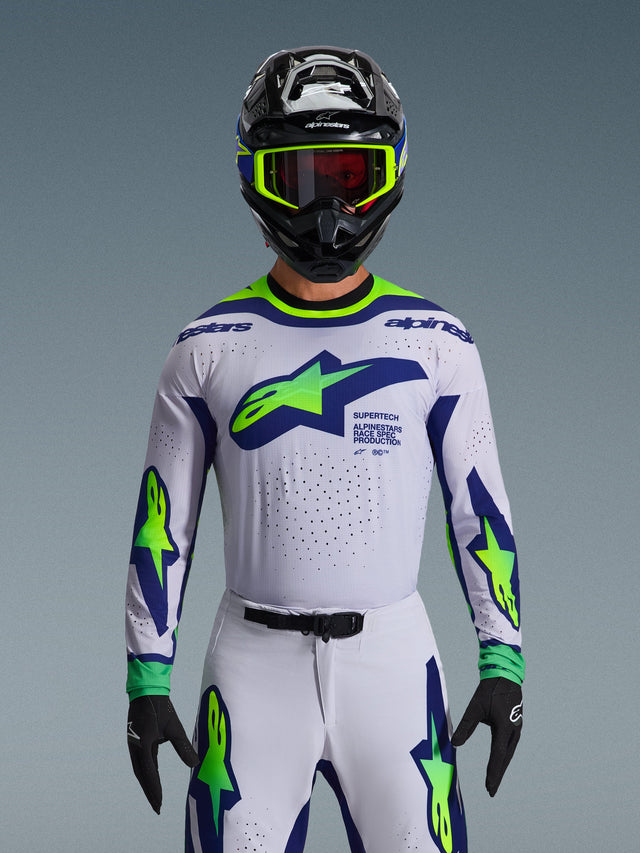Supertech is Alpinestars innovative Pro Level Motocross apparel line, designed for superior dirt riding performance. Supertech gear offers a full Factory Rider design, featuring a variety of SX and MXGP race-proven technologies that deliver premium levels of flexibility, freedom of movement, ventilation, durability, and rider comfort.