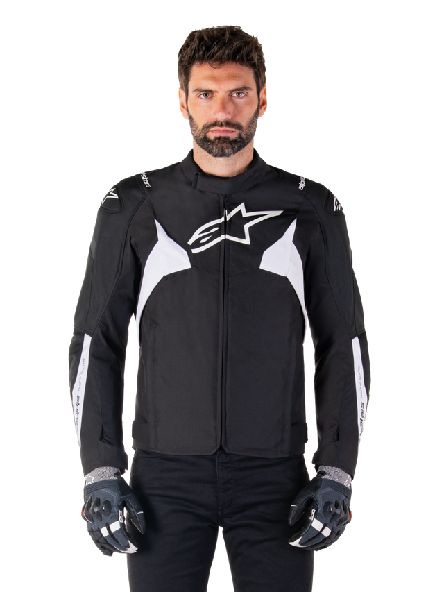 The T-Jaws v4 Waterproof Jacket offers a revised sport fit and 3D pattern silhouette designed for optimal riding comfort. Constructed from a blend of 600D and 450D poly fabric materials, the jacket offers premium rider comfort and waterproof protection, keeping riders dry during wet weather conditions. The jacket’s abrasion-resistant main shell incorporates leading protective features combined with a stylized aggressive look. The T-Jaws v4 WP Jacket comes with a removable fleece-backed thermal liner to provide added warmth during cold mornings and evening rides. The T-Jaws v4 is the perfect choice for sports riders looking for looking for a stylish and race-derived waterproof (WP) textile jacket with year-round comfort and wet weather performance.