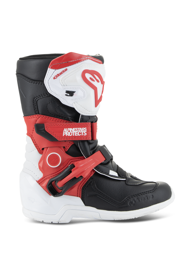 The Tech 3S Kids Boot was developed with direct feedback from young kids and MX riders testing the boot at the track. Alpinestars values athlete input and worked closely with riders to create the new Tech 3S Kids Boot and to achieve the perfect level of flexibility and comfort. Like the Tech 3S Youth Boots, the Tech 3S Kids Boots will also come with the insole size adjuster to adapt the boot’s size as the child grows and provide parents with extra value on investment.With a brand-new redesign, the Tech 3S Kids Boots provide a protective off-road boot for lightweight riders. Not only are the boots lighter, easier, and more flexible while still offering strong support, the Tech 3S Kids Boot now features a microfiber toe with internal tip impact reinforcement for optimized riding feel and flexion comfort, both medially and laterally. The Tech 3S Kids Boot has a lightweight supportive shell on the ankle. The design incorporates a new lateral and medial blade as well as a medial and lateral flexion system, a unique offering from Alpinestars, especially when it comes to youth and kids MX footwear. In addition, the shin plate features a convenient and easy hook and loop closure, as well as a new hook and loop middle closure, perfect for easy on and off, as well as quick and secure adjustment. The bottom buckle is a traditional Alpinestars Tech series buckle that provides strong support. The Tech 3 Kids Boot is the ideal protective off-road boot for kid riders with updated style and softened components. The new design features of the Tech 3 Kids include:
