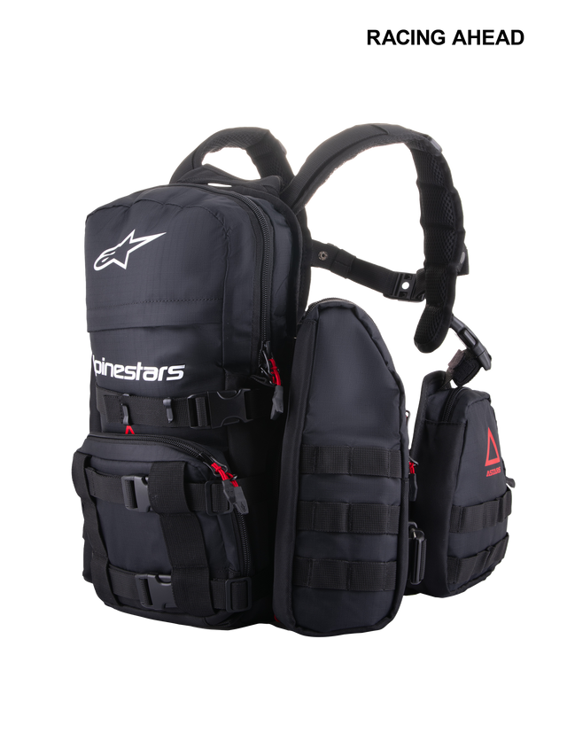 • Ergonomic shoulder straps with perforated foam padding and mesh panels for an optimized airflow, adjustable and removable chest strap and the Alpinestars’ magnetic chest buckle for a fast and secure adjustment.