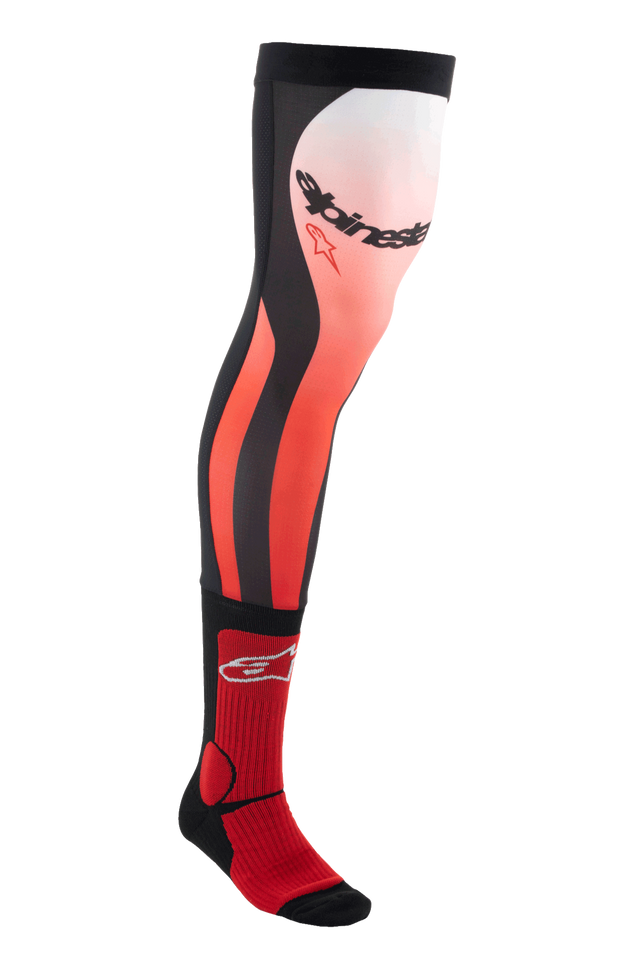 Specifikt designet til at blive båret med Alpinestars' udvalg af off-road støvler og knæbeskyttelse, har MX Long Knee Brace Socks en enkeltlags kompakt konstruktion for høje niveauer af åndbarhed og generel komfort. Strømperne har et strækbart Lycra-område øverst, der inkluderer en meshindsats på bagsiden af det øverste ben, og en elastisk øvre kant med indvendigt silikonegreb for at holde strømperne på plads. MX Long Knee Brace Socks giver forbedret rytterkomfort og pasform til MX-ryttere, der bærer knæbeskyttelse.