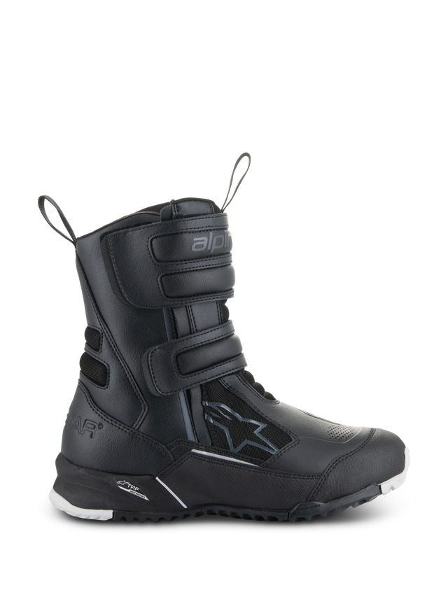 Alpinestars' integrerede Transversal Protection Frame (TPF) beskytter foden, mens den leverer den nødvendige støtte på fodstøtten uden at kompromittere forfodens fleksion for overlegen gåkomfort.